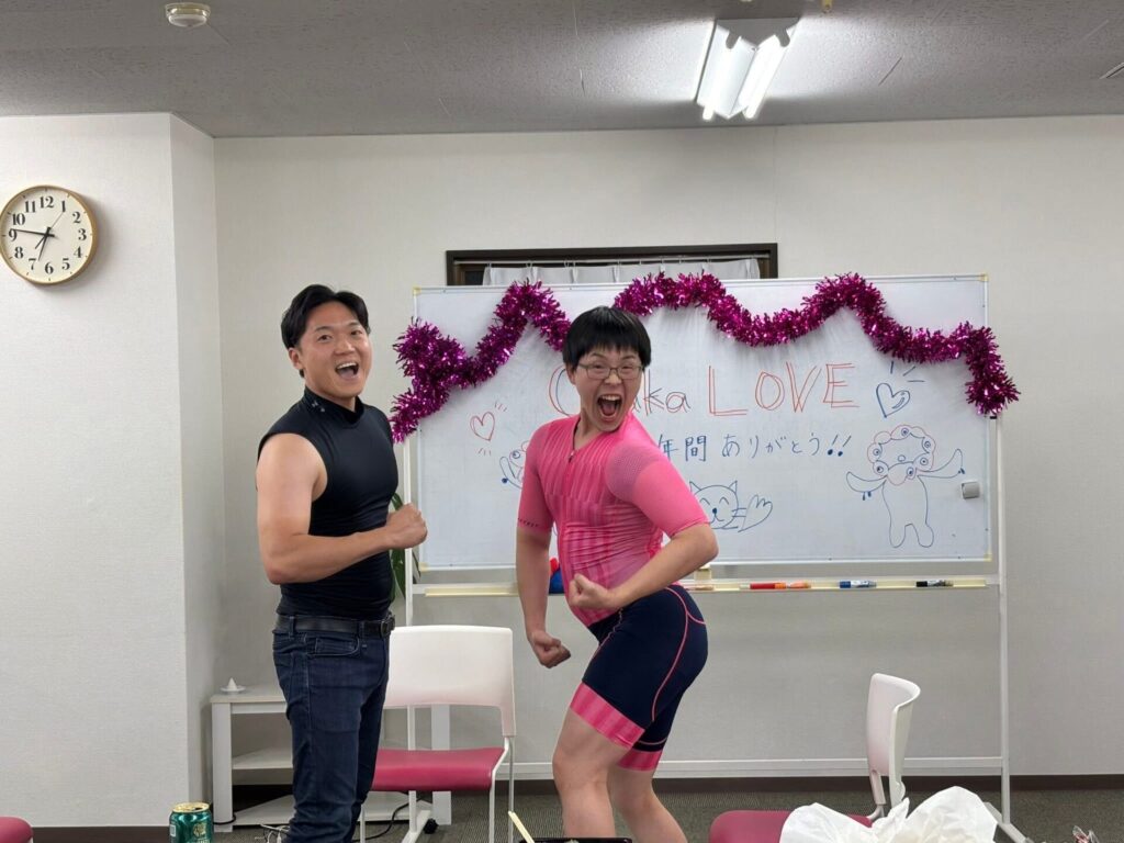 「大阪セミナールームお別れ会で筋肉漫才をせよ」(意訳)